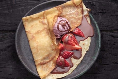 Schinken - Käse - Ei / Spinat - Schafkäse / Hühnerfilet - Champignons „Fôrestière“ - Käse / Räucher-Lachsforelle - Zitrone - Dille - Crème fraîche / Camembert - Gebratene Rotwein-Äpfel - Preiselbeersauce / Berglinsen - Ratatouille-Gemüse - Räuchertofu * Humus - Getrocknete Tomaten - Avocado - Frühlingsalat * /Beliebig viele SÜSSE CRÊPES aus folgender Auswahl: